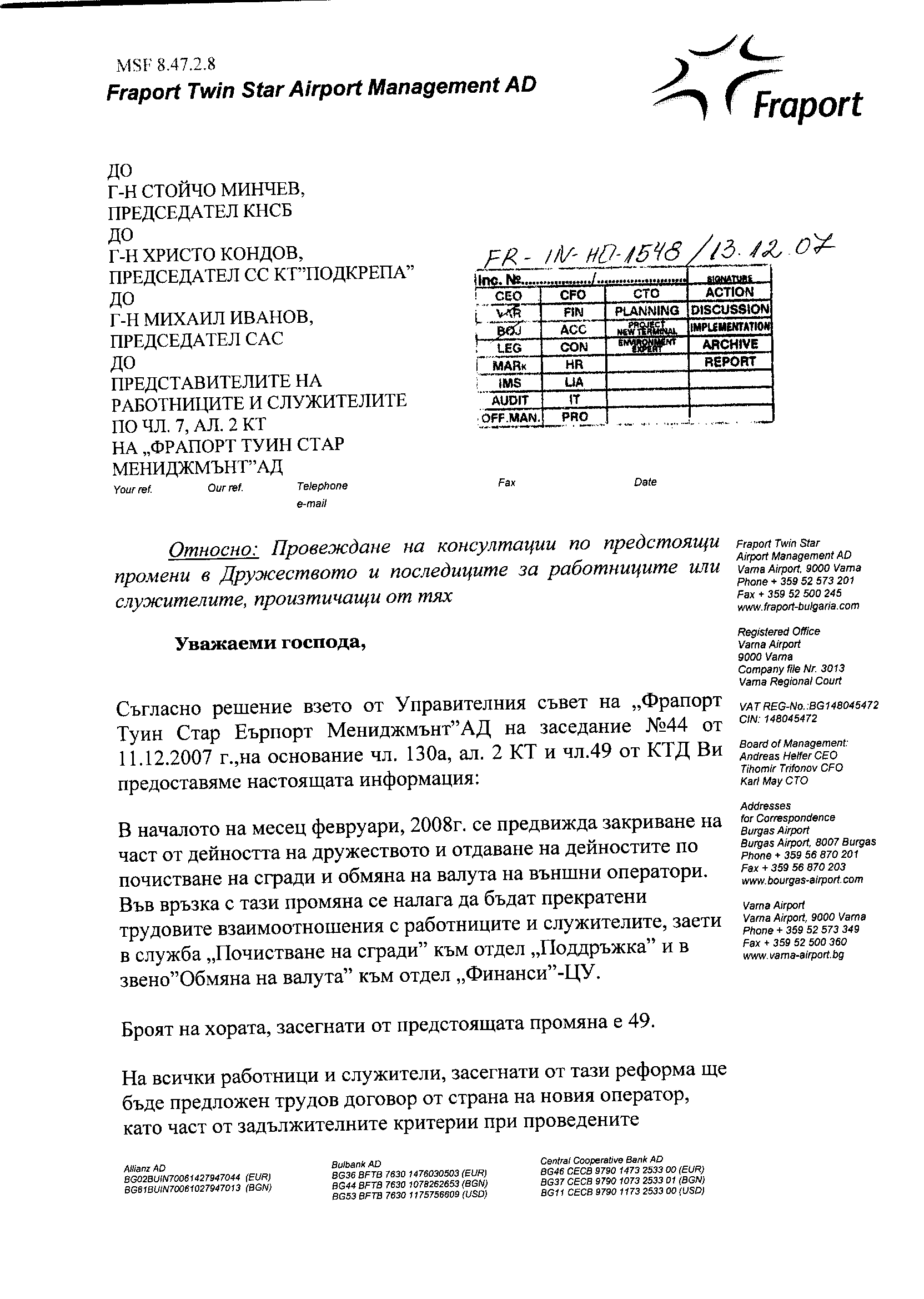 Насочен документ (eProcess) FR-IN-HO-1548 / 13/12/2007